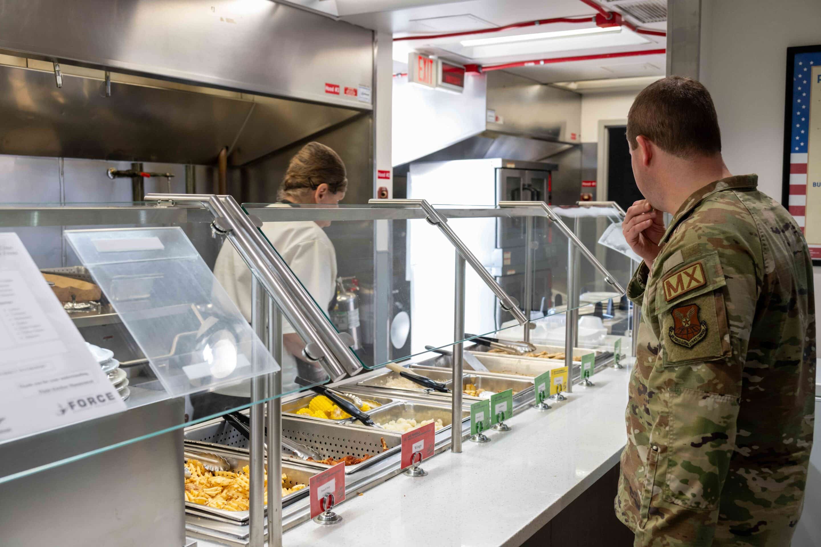 The In-Flight Kitchen supports authorized personnel working on the flight line, offering a diverse menu that includes a fresh salad bar, convenient grab-and-go options, a variety of entrees, and delicious desserts. Our team is dedicated to delivering the finest food quickly and efficiently. Additionally, we prepare box meals upon request. For more information or to request box meals, please contact 660-687-2700.